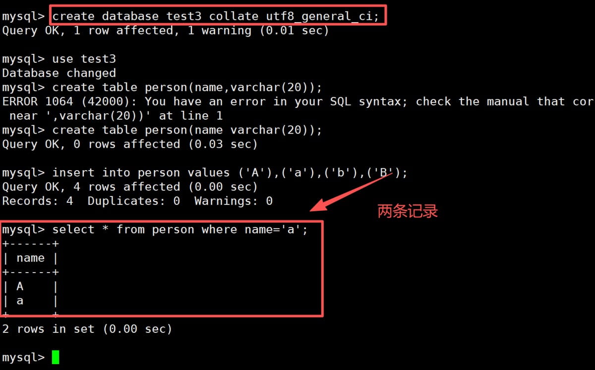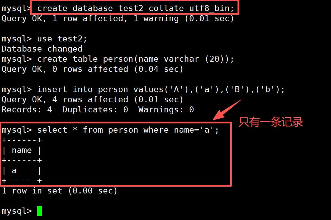 insert into person values ('A'),('a'),('b'),('B'); #在表person内插入数据