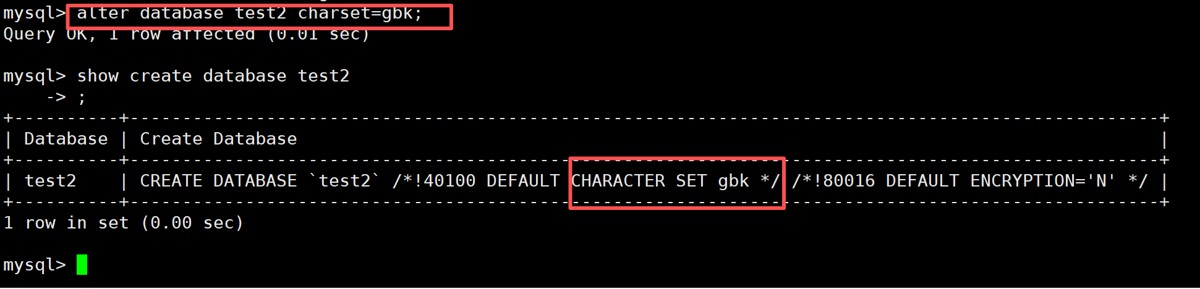 - 修改数据库:仅支持修改字符集和校验规则,语法如下: