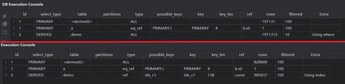- 优化器认为索引更优:成本 123,426 < 206,070