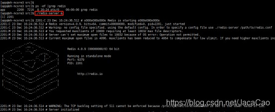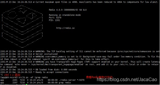 说明:输入./redis-server启动命令记得要在后面加&,这样ctrl+c退出之后就不会中断启动操作。