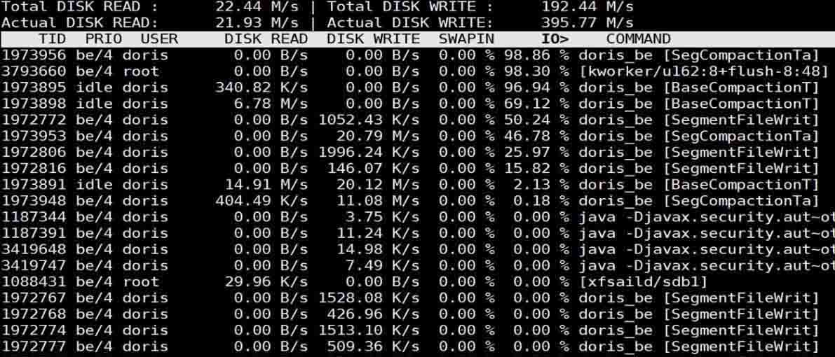 - 内存正常、cpu正常、磁盘IO异常(使用iotop可以看到有很多BaseCompaction)
