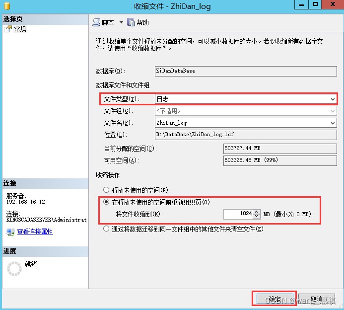 -- 将数据库恢复模式更改为简单 ALTER DATABASE [ZiDanDataBase] SET RECOVERY SIMPLE; GO -- 收缩日志到1G DBCC SHRINKFILE (N'ZhiDan_log', 1024); GO -- 将数据库恢复模式更改为完整 ALTER DATABASE [ZiDanDataBase] SET RECOVERY FULL; GO