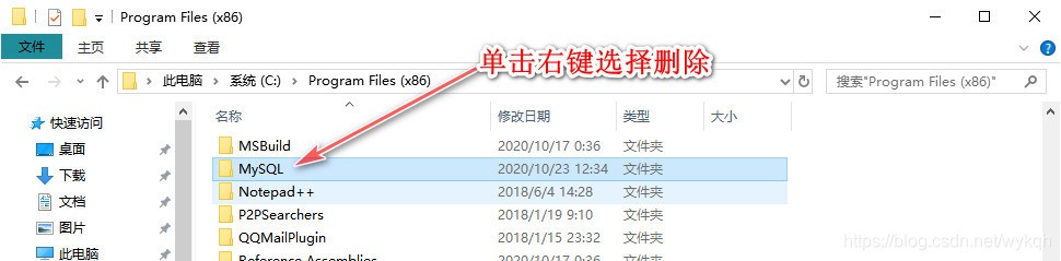 (4)将C盘programdata中与MySQL有关的文件夹删除