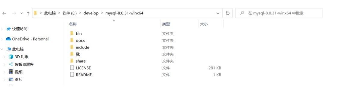 下载完成后我们得到的是一个压缩包,将其解压,我们就可以得到MySQL 8.0.31 的软件本体了(就是一个文件夹),我们可以把它放在你想安装的位置。