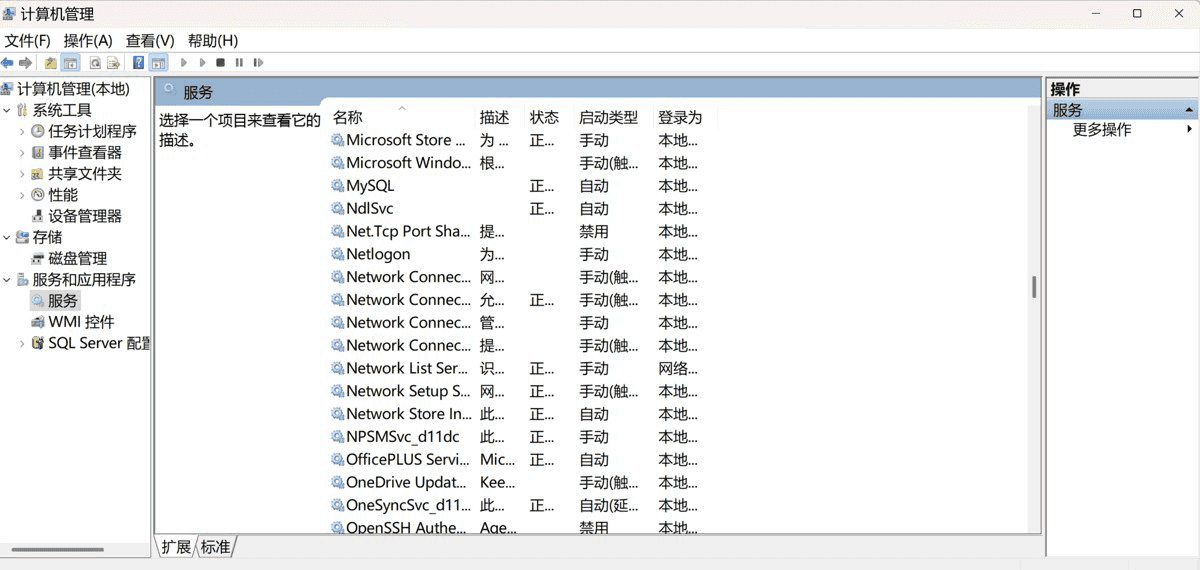 (2)右击此电脑,选择管理,在左侧栏中找到服务,查看是否有与mysql相关的