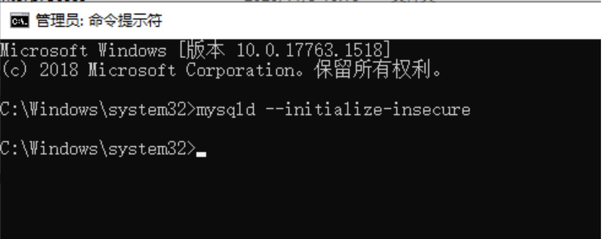 在刚才的命令行中,输入如下的指令: mysqld --initialize-insecure