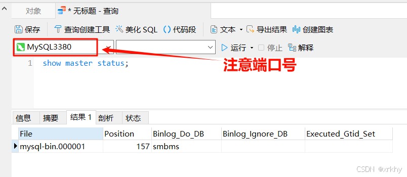 打开navicat输入show master status;