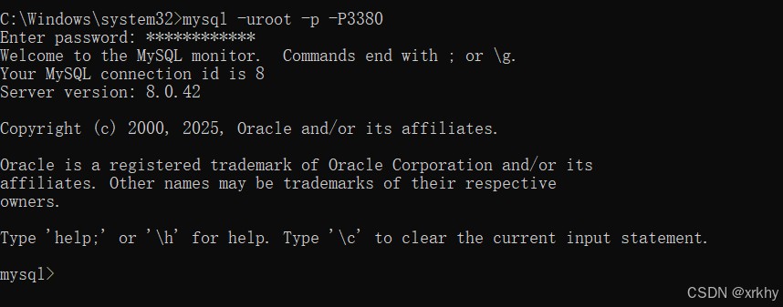使用命令进入mysql -uroot -p -P端口号 ,进入控制台修改密码,这个密码是上面初始化的密码。