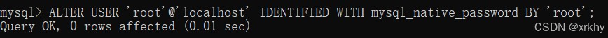 输入如下命令初始化密码为rootALTER USER 'root'@'localhost' IDENTIFIED WITH mysql_native_password BY 'root';