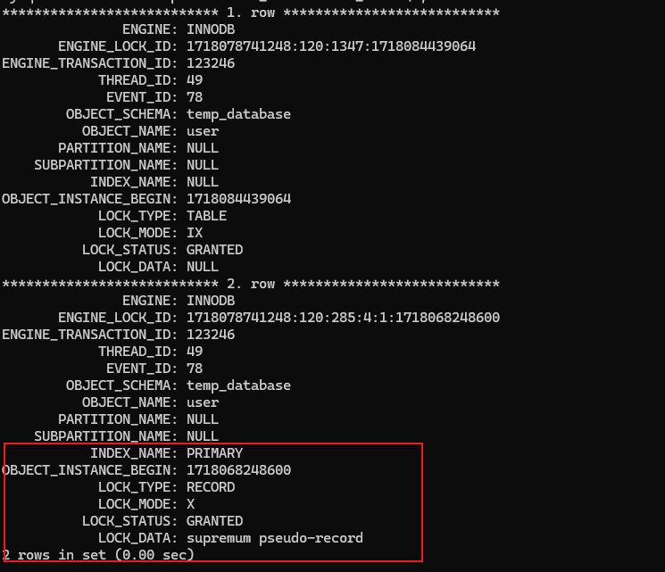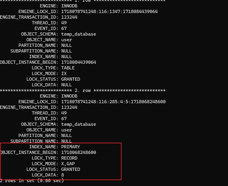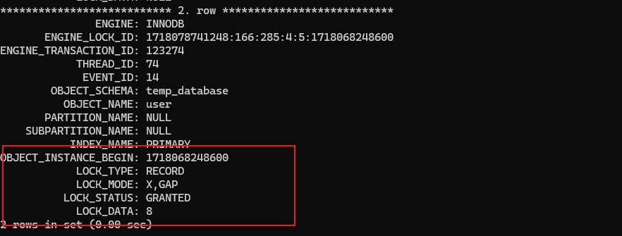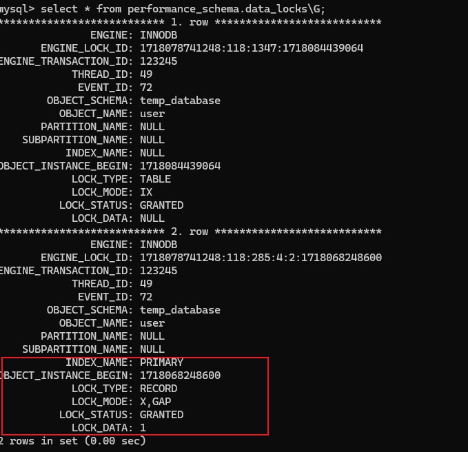 使用select * from performance_schema.data_locks\G;查询当前锁的情况
