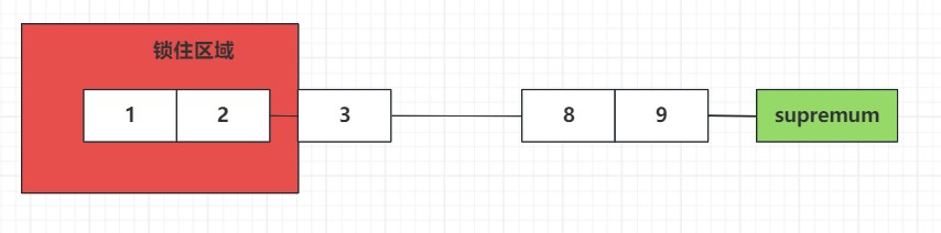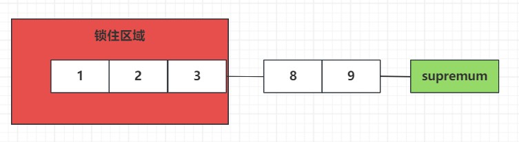 这里会给表中所有大于端点值的记录全部加上临键锁,这里可以把supremum一个虚拟点,对虚拟点加锁就是给大于当前表中索引最大值的间隙加锁