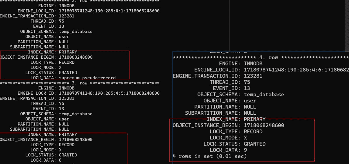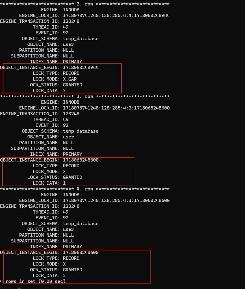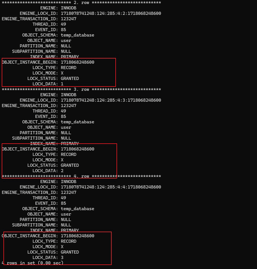 begin; select * from user where id = 4 for update;