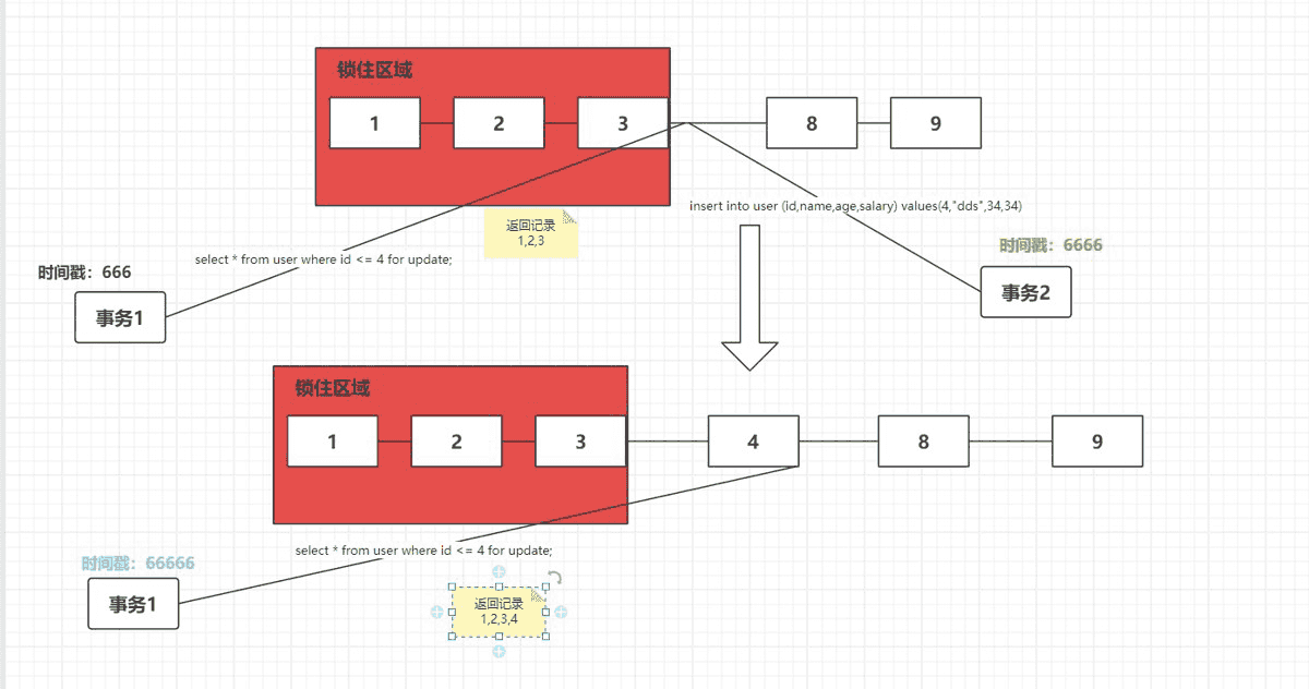 这里需要多锁一条记录的原因是可能会有其他事务插入id为4的记录,造成幻读