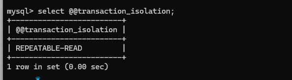 查看当前mysql的隔离级别:select @@transaction_isolation;
