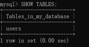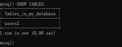 查看该数据库是否成功使用命令:SHOW TABLES;