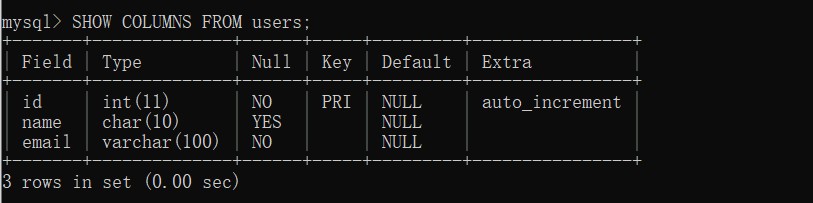 ALTER TABLE users MODIFY COLUMN name CHAR(10);