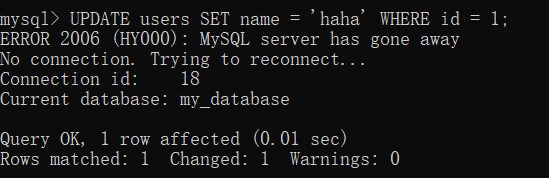 UPDATE users SET name = 'haha' WHERE id = 1;