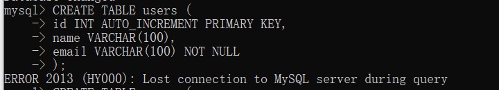 我这边出现了上面这种错误,其实是因为长时间没有操作的原因,导致连接中断,只需要重新再运行一次就ok了