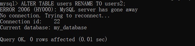 这里注意上面我们已经把users表改名为users2了,不然会报错