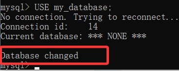 只需要出现我图中框的Database changed这句话就表示成功进入了你创建的那个数据库