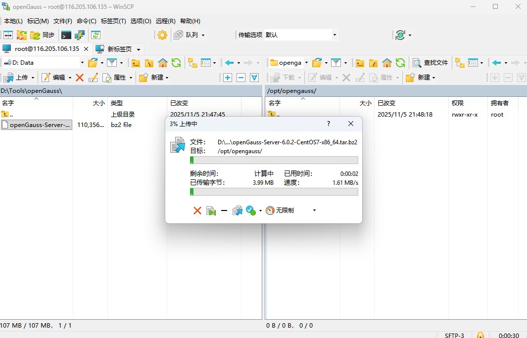 上传并解压安装包(假设包已上传到 /opt/opengauss):