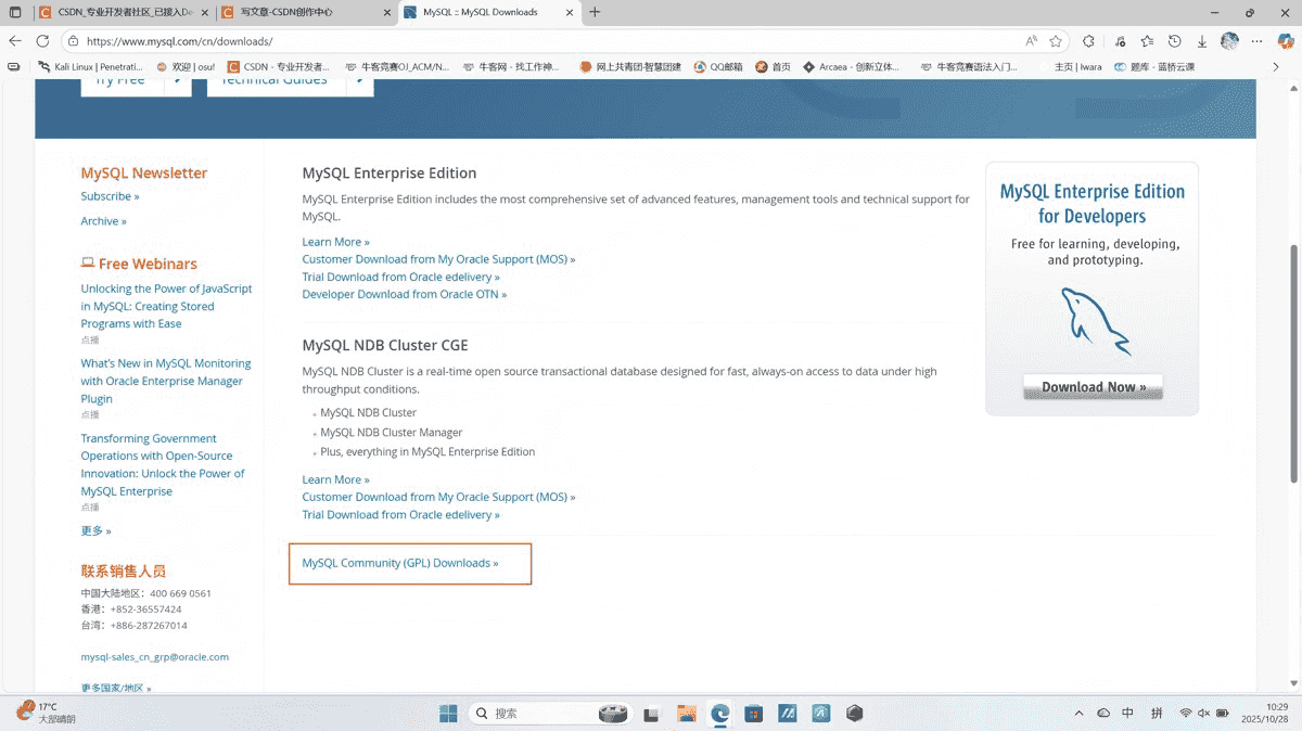 1.点击MySQL官网链接MySQL :: MySQL Downloads,鼠标滚轮往下滑动,点击MySQL Community (GPL) Downloads »