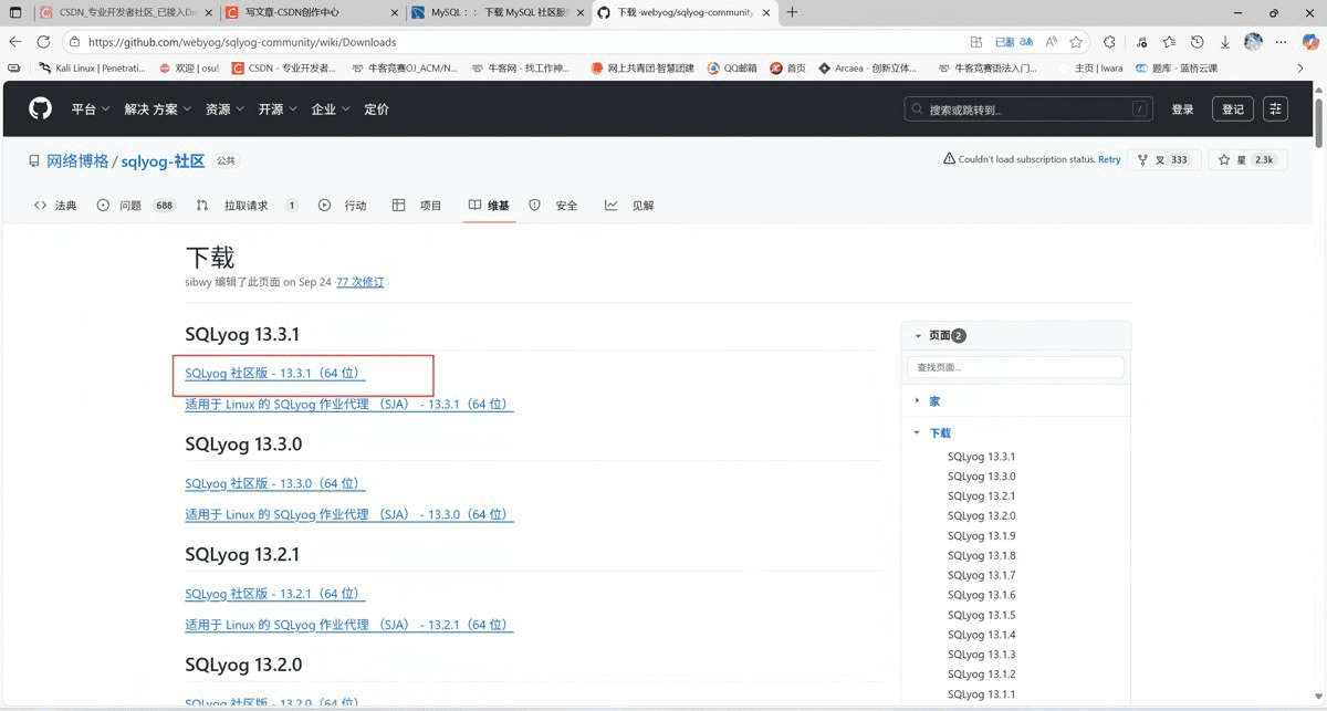 1.点击网址下载 ·webyog/sqlyog-community 维基百科 ·GitHub,这里我们以13.3.1社区版本为例