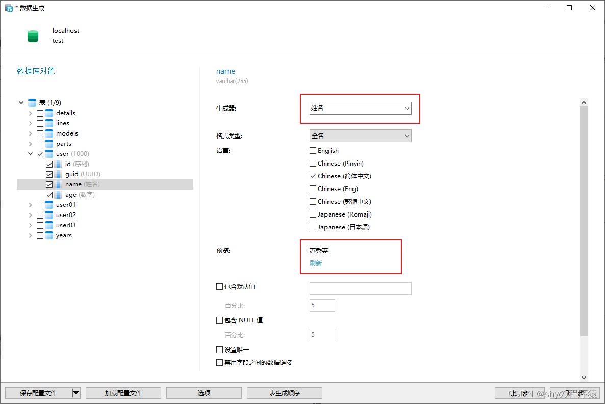 tips:我们在这一步可以对我们刚才所做的配置进行保存,并且可以在下次生成数据的时候直接加载配置好的文件