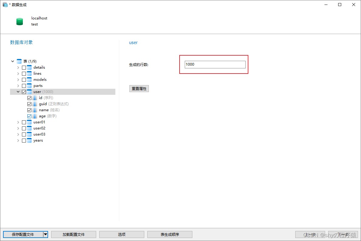 点击“数据生成”后,我们点击表名可以设置数据的生成数量