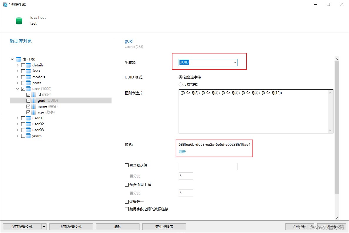 例如我的guid需要是uuid类型的,那我就可以选择uuid生成器