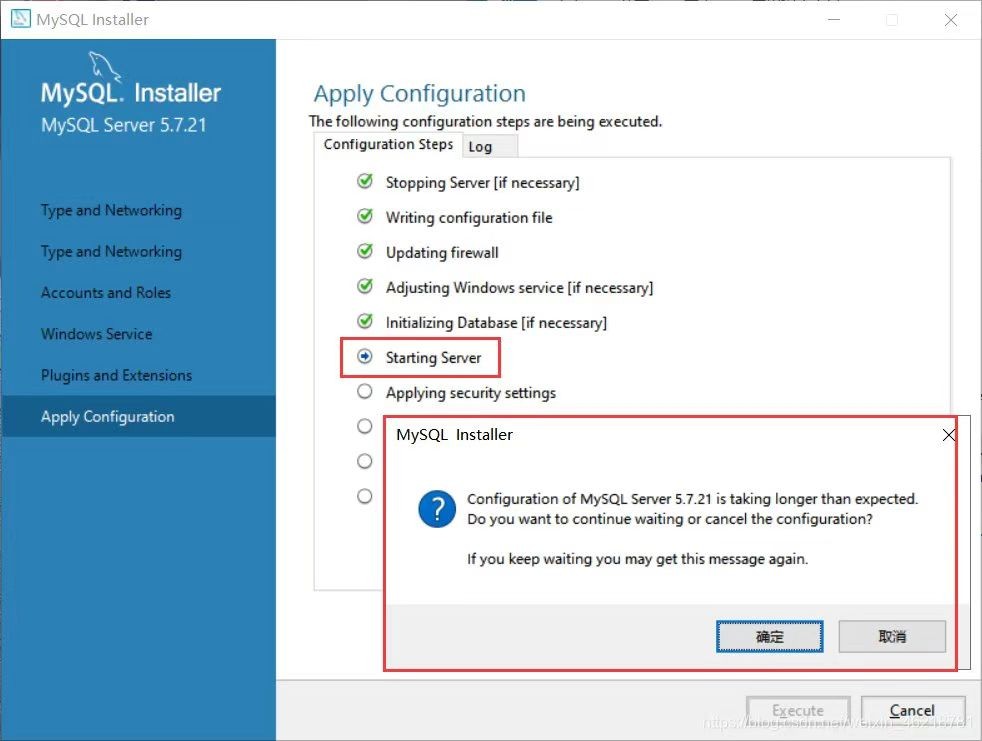 2. MySQL安装过程中出现initializing错误通常由有以下原因导致