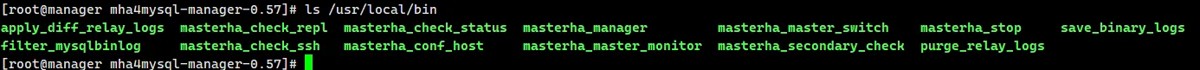 cd /opt tar zxvf mha4mysql-manager-0.57.tar.gz cd mha4mysql-manager-0.57 perl Makefile.PL make&&make install