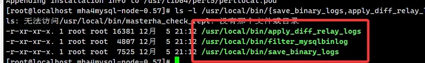 ls -l /usr/local/bin/{save_binary_logs,apply_diff_relay_logs,filter_mysqlbinlog,masterha_check_repl}安装成功node