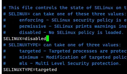 systemctl stop firewalld systemctl disable firewalld setenforce 0 getenforce