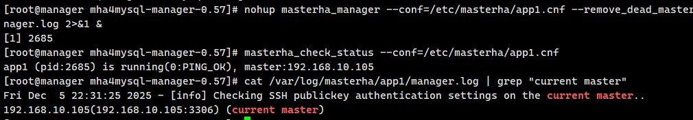 nohup masterha_manager --conf=/etc/masterha/app1.cnf --remove_dead_master_conf –