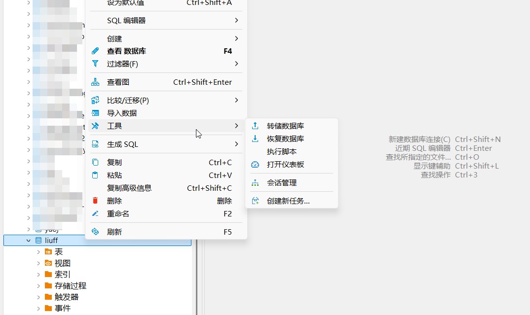 右键点击 liuff 数据库 -> 工具 -> 执行脚本
