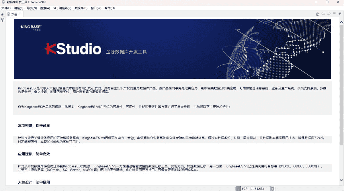 KStudio是金仓数据库提供的图形化客户端工具:
