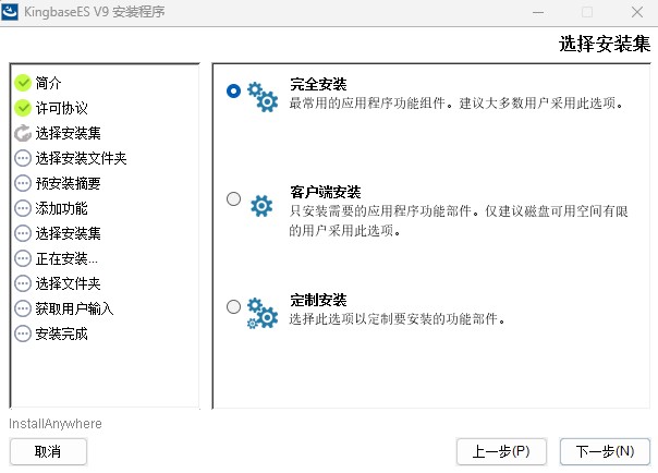 - 完全安装:安装服务端和客户端组件