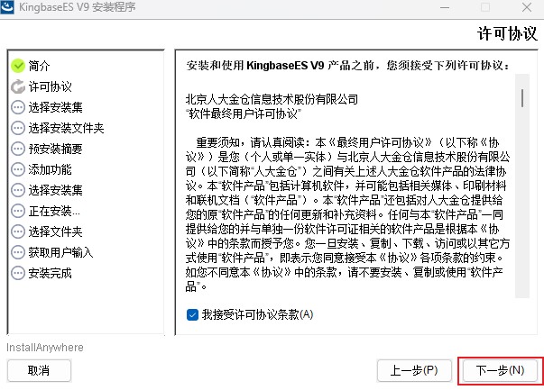 接受许可协议,点击"下一步"