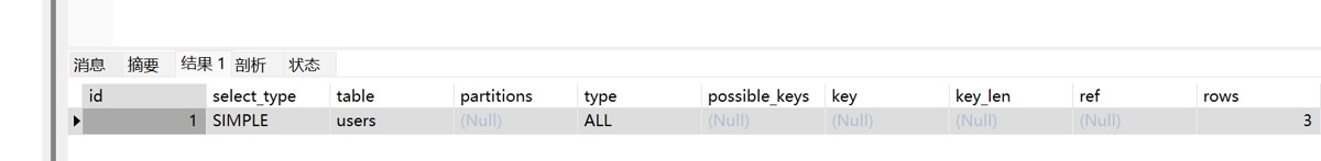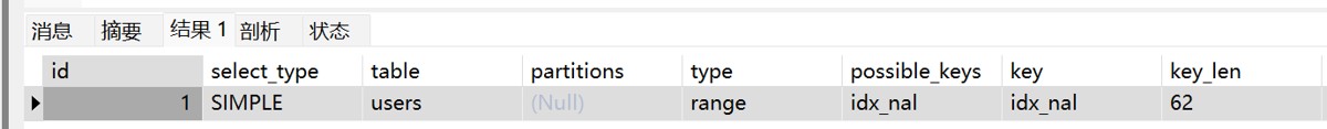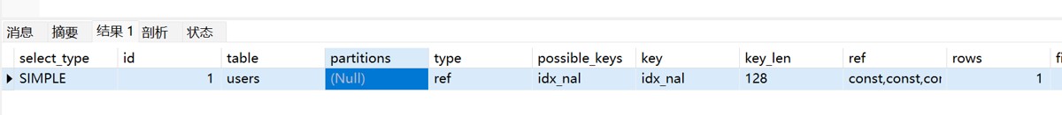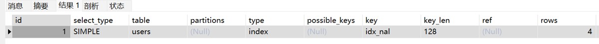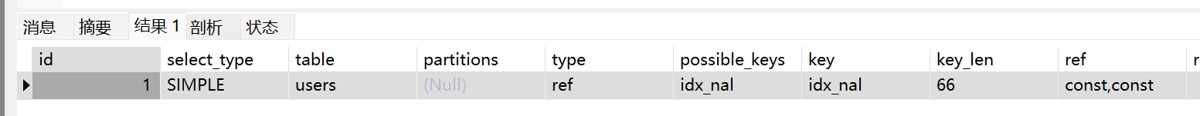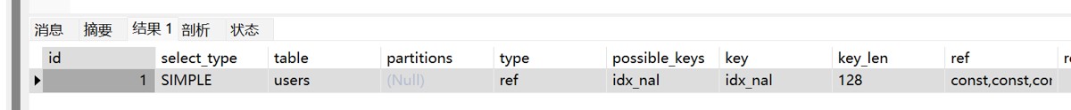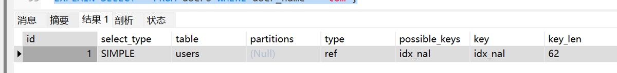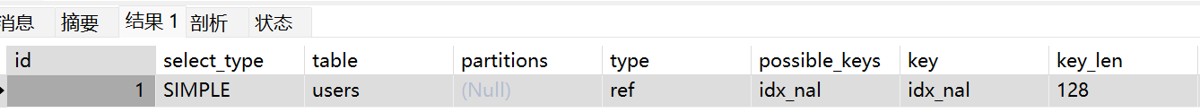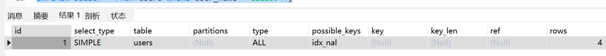 -- 条件只有一个 user_name EXPLAIN SELECT * FROM users WHERE user_name = 'tom';