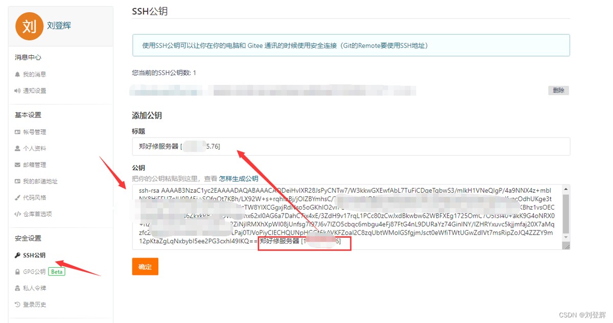 2.设置你这台服务器的ssh备注,这个备注用于自动上传的备注信息,这里我是用备注+服务器ip的形式作为备注的
