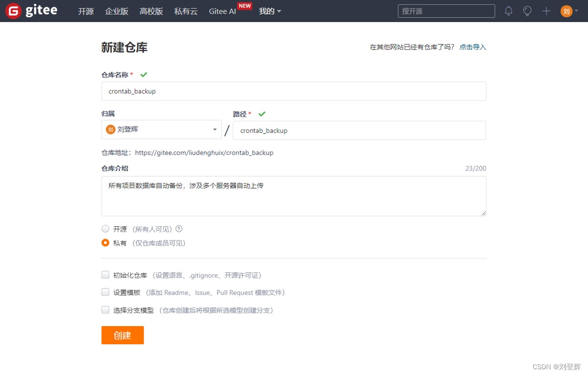 gitee创建数据库备份项目