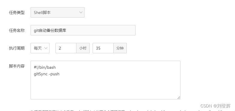 因为数据库是每天2小时30分钟开始备份的,所有延迟5分钟设置在每天2小时35分钟开始执行git上传