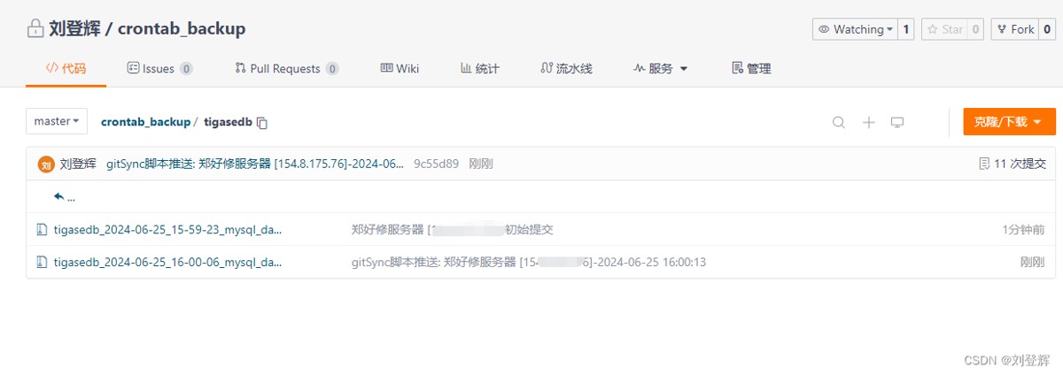 可以看到,初始化的时候显示的是 备注+ip初始化提交,计划任务提交的时候显示的是gitSync脚本推送外加备注信息
