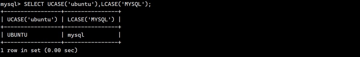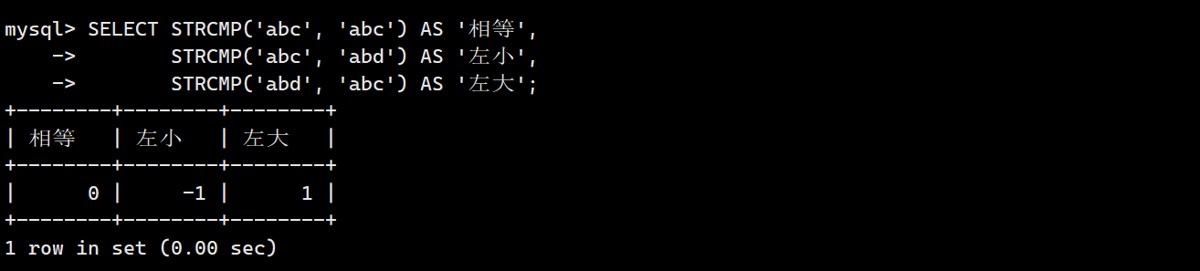 UCASE(str) / LCASE(str):转大写 / 转小写,STRCMP(s1, s2): 比较两个字符串。相等返回0,左边小返回-1,左边大返回1