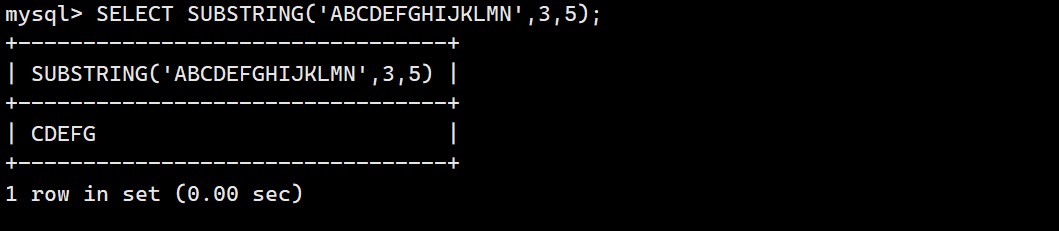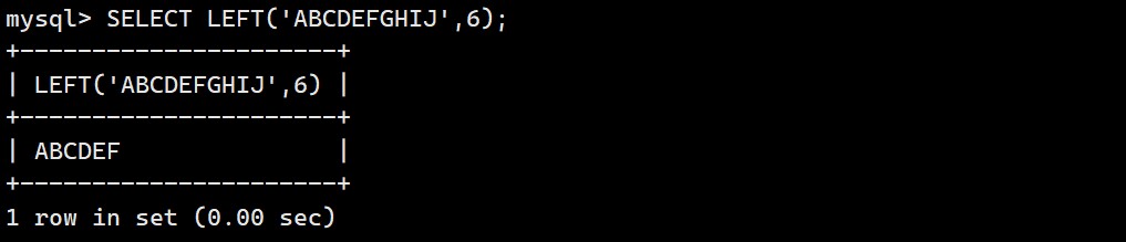 LEFT(str, len): 从左边起取 len 个字符,SUBSTRING(str, start, [len]): 从指定位置开始截取