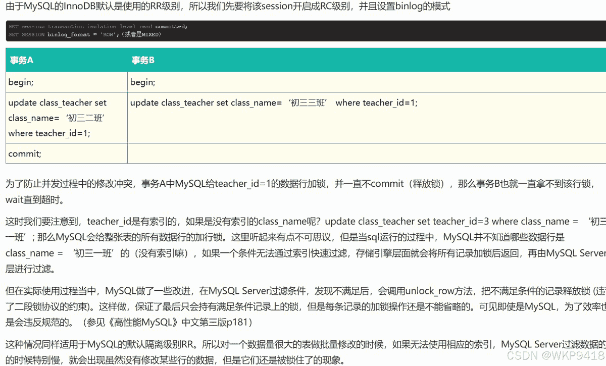 但是会有幻读问题,幻读是一种特殊的不可重复读。为啥说是特殊的不可重复读呢?因为幻读是范围性的不可重复读。事务A执行select …where前后,如果其他事务执行insert语句插入了满足where条件的记录,那么事务A的两次查询结果会不一样。