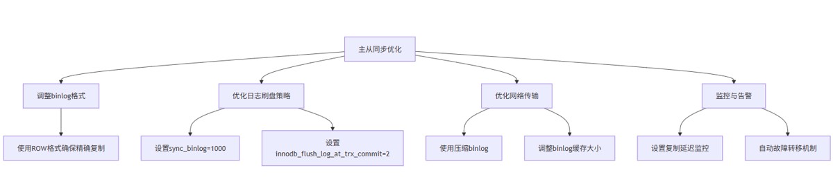 sync_binlog=1000平衡性能与安全,设innodb_flush_log_at_trx_commit=2减少I/O开销 。 - 网络传输优化:使用
