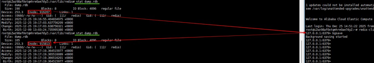 - save命令:同步阻塞式触发,执行期间Redis服务器不处理任何请求,直到RDB文件创建完成(不推荐)