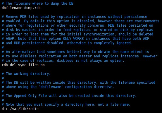 RDB文件保存在dir配置指定的目录下(默认/var/lib/redis),文件名通过dbfilename配置指定(默认dump.sql)